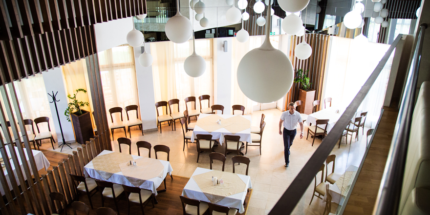 U sklopu Centra je alla carte restoran (menu ili buffet) sa raspoloživih max.100 mesta, uz koji se prostire letnja terasa sa 150 mesta, nadkrivena pergo tendom. Terasa je idealno mesto za održavanje većih skupova, proslava, manifestacija sa koje se pruža prelep pogled na livadu i listopadnu šumu.